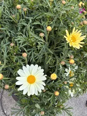 1年目、2年目、3年目🌿🌸 ボンザマーガレットが咲き進み、玄関前が華やかになって来ました😀