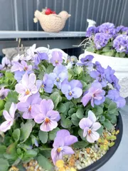淡くて可愛いフィオリーナ✨ フィオリーナのオーロラとスカイブルーの寄せ植えです♡フィオリーナは色幅がありますが、わたしは淡いカラーが好きなので薄めピンクの株を選んで植えました🪴スカイブルーとの相性もバッチリで、透明感ある淡くて可愛いコンビになってます💖🩵(後ろにチラッと見えるのはミルフル♪🤭)