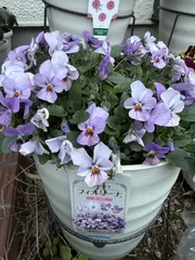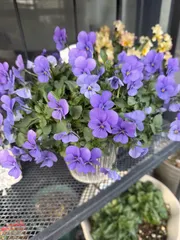 フィオリーナ💜スカイブルー💙 前回の投稿から1ヶ月経過花がらを積む程度で次々開花🌱可愛い〜後ろにチラリミルフルも💛