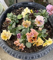 ミルフル挿し芽丼🧡🩷💜 挿し芽ミックス、まだまだ小さいけど咲いてきましたね🤗