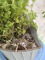 ひぇぇぇ😱 簡易温室で冬越しをしていたお花達の土を交換しようと温室を開けたら 土にカビかぁぁぁ😱お水をあげたのち 暖かい日が続いた時に開けて風を入れてなかったから蒸し風呂状態になってカビが繁殖しちゃったようで💦カビの生えてる土を取り除き お水で株元を洗ってから土を入れ替えましたが...💦💦冬越し成功したものの