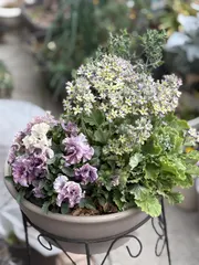 雪の日でも 普段から直射日光に当てないようにしてるから、軒下が定位置😊避難してたミルフルも雪⛄️に当たらず無事だったので、ツーショット✨✨ ミルフル6号鉢ウインティー5号鉢小さい鉢でも結構咲く🤭