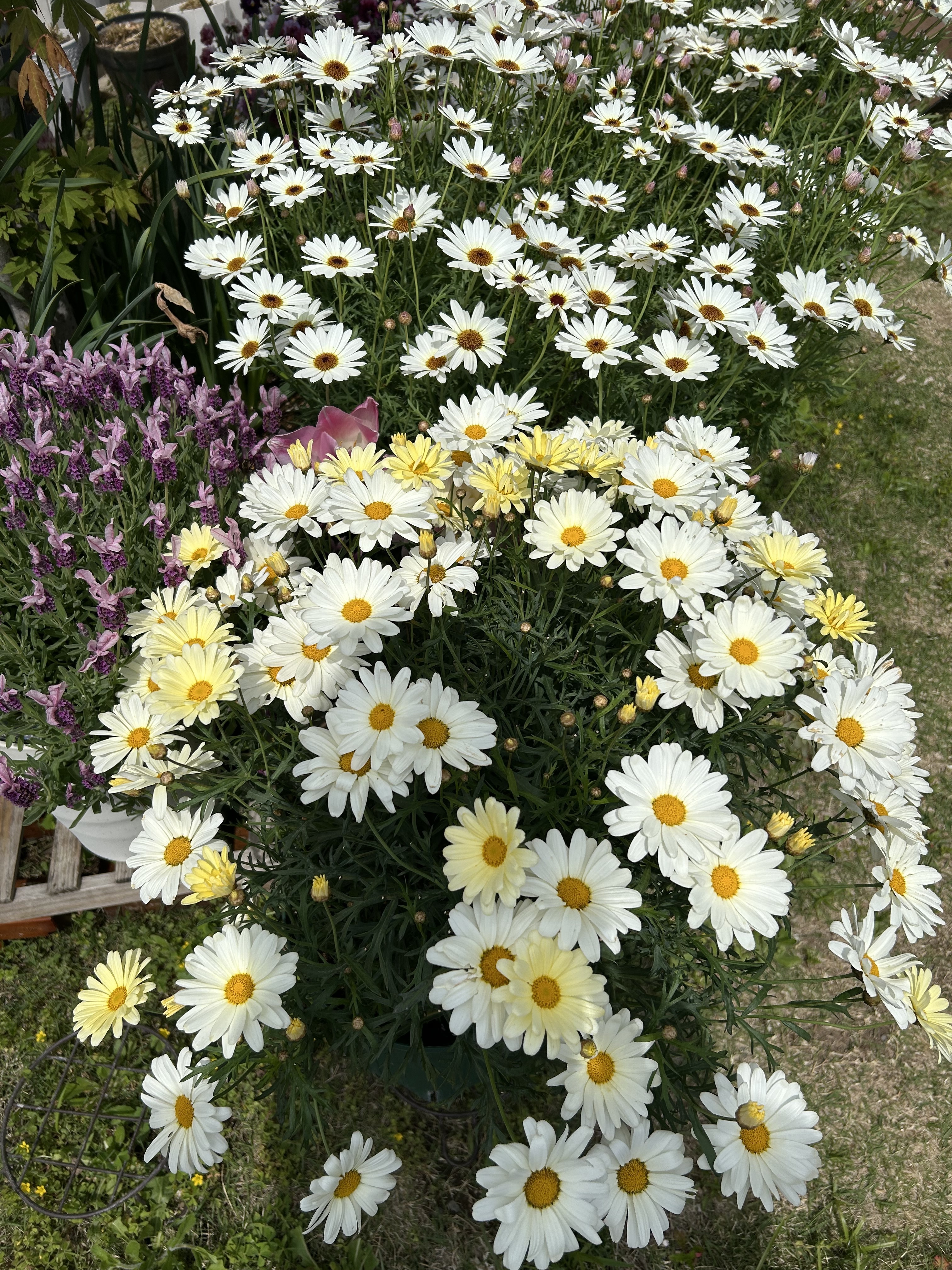 トップ > マイガーデン > 花活 > マックスマムホワイトとボンちゃん かなで 関東 2026/04/25 19:33 マックスマムホワイトとボンちゃん マックスマムホワイト ボンザマーガレットクリームホワイト マックスマムホワイトとボンザマーガレットクリームホワイトのお花の大きさほぼ変わりません😳 マックスマムホワイトは2年目で親株と挿し芽株の2株あります🪴🪴 ボンザマーガレットクリームホワイトはだいぶ花がらを摘みました 切り戻ししないでこのままお花を楽しもうと思います🌼 マックスマム 今年育てる花 わたしの成長記録 マックスマムホワイト ボンザマーガレットクリームホワイト いいね 共有する 共有する リンクをコピー マックスマム 詳細を見る コメントする 1 件の返信 (新着順) ミュートしたユーザーの投稿です。 投稿を表示 かふぇらて 近畿 2026/04/25 23:33 かなで かなでさん♡ マックスマム!咲いて来ましたね〜☺️ホワイトもかわいい💕 ウチは親株は召されたけど さし芽は成功してくれたので 今、2鉢咲きはじめてくれてる💕 クリームホワイトと同じくらいの大きさなんですね😳 マックスマムのホワイトお迎えしようか迷ったけど ボンちゃん多いのでやめてしまったよ🫷 次回はお迎えしようかなっ🤭 それと! YouTubeでサンパラソル採用されてたね☺️ おめでとう〜〜🎊 あのフェイスへ絡ませたいだぁ〜❤️ って興奮したよ🤩 また絡ませたいね🙌 いいね 返信する ミュートしたユーザーの投稿です。 投稿を表示 かなで 関東 2026/04/26 07:54 かふぇらて かふぇらてさん✨おはよう😊 季節はボンザマーガレットからマックスマムに移ってきてますね☘️ かふぇらてさんちのマックスマムさんも投稿待ってます💖 YouTube観てくれてありがとうございます😊 びっくり😳と嬉しい😃が同時にやってきたよ😆😁 フェンスに絡ませたい❣️覚えていてくれてありがとう🌺 残念ながら冬越しできなかったみたい まだ諦めきれずに鉢はそのままなんだけどね💦😅 新しい子でまたフェンスに絡ませたい続けます💪💖 いいね 返信する