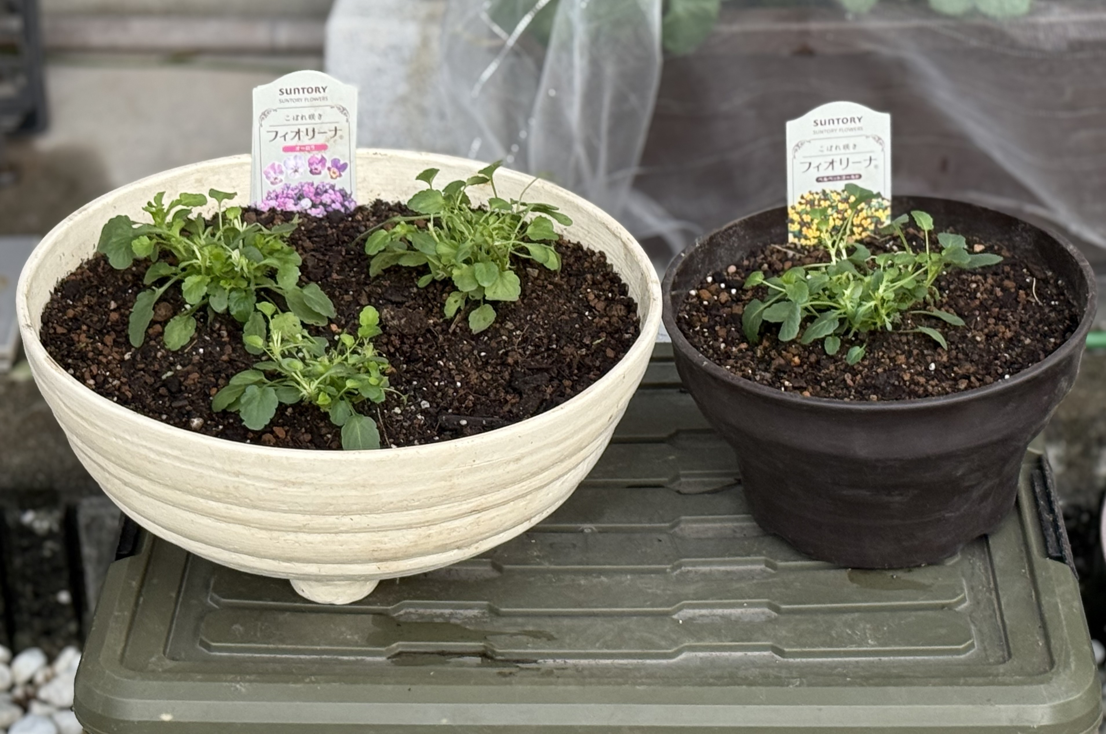トップ > マイガーデン > 花活 > 今年のフィオリーナは浅鉢で kyon 2025/10/27 07:33 今年のフィオリーナは浅鉢で 毎年フィオリーナは単品植えで鉢は⬇️の普通?の鉢にしていました 昨年まではこの普通?の鉢今年は鉢を浅鉢に変えてオーロラは3株植え ベルベットゴールドも 例年より浅い鉢に植え付けました 毎年鉢からこぼれる程こんもりと咲いてくれるフィオリー 今年は浅鉢に植えて 鉢が見えなくなる様に咲いてほしいとの願いを込めて植え付けました フィオリーナにこの浅鉢では根っこ窮屈かな? 成長の様子を見て途中で普通の鉢に戻すかもです🙄 フィオリーナ フィオリーナ フィオリーナ_k いいね 共有する 共有する リンクをコピー フィオリーナ 詳細を見る コメントする 0 件の返信 (新着順)
