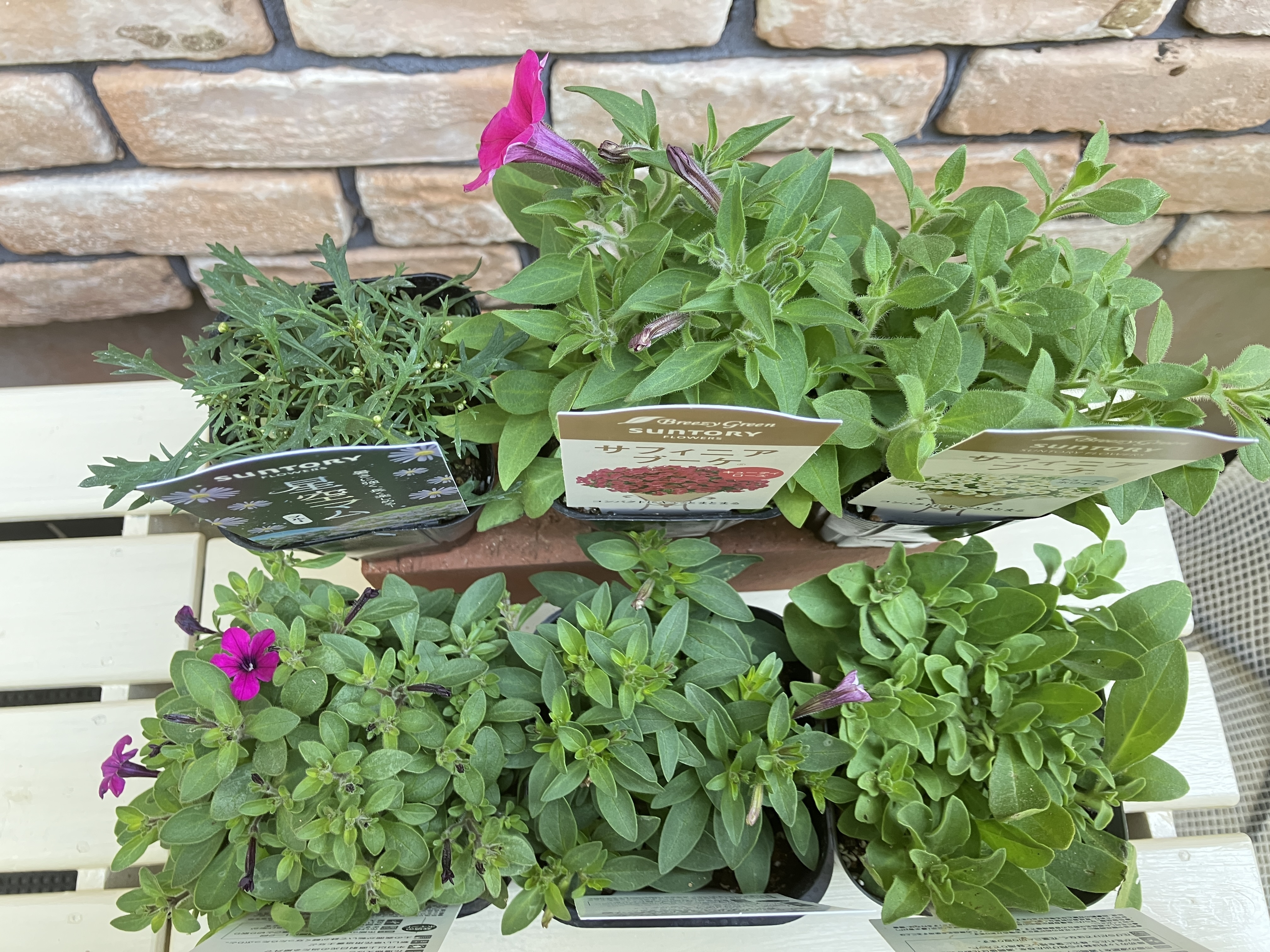 予定の3苗以外に、コメリ🐔でサフィニアブーケ、コーナンにも寄って、ラベンダーレース、プチホイップをお迎えしてしまいました🤭
