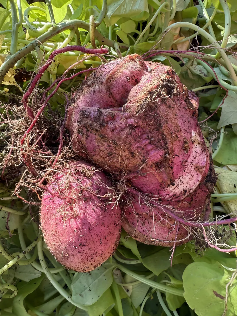 株元の土が盛り上がってるので、うちはどんなお芋さんが出るか楽しみになりました😁