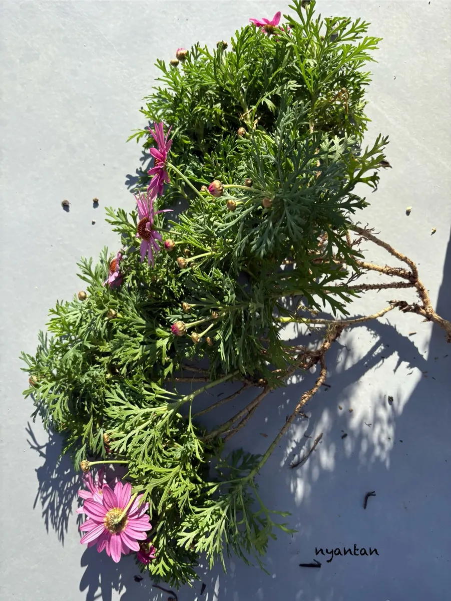 トップ > マイガーデン > 花活 > 強風にはくれぐれもご注意をー⚠️ にゃんたん 2026/01/14 18:59 強風にはくれぐれもご注意をー⚠️ 1月14日やっちまいました〜(꒪д꒪II昨日の強風🌀我が家のボンちゃんなぎ倒していきました😱この子2024年10月お迎え2回めの冬越しチャレンジ中( •̀ •́ )୨⚑︎゛蕾もたくさん上がったきて春の満開🌸楽しみにしてたのに_(:3 ⌒゙)_ポッキリ折れた茎を集めて花瓶にいけたけどあまりのボリュームにびっくりガックリ_| ̄|○ il||liしています……。あ〜失敗した😭 ボンザマーガレット わたしの成長記録 ボンザマーガレットコスモスピンク 強風注意 いいね 共有する 共有する リンクをコピー ボンザマーガレット 詳細を見る コメントする 1 件の返信 (新着順) ミュートしたユーザーの投稿です。 投稿を表示 ちむ 2026/01/14 19:30 にゃんたん 近ごろは風が強いから気をつけていてもショックですね💦 わたしも去年ボンちゃんのレモンイエロー折れちゃいましたし、今年も鉢倒れてます🪴💦 まん丸じゃなくても可愛かったですよ😊 元気出してくださいね♪ いいね 返信する ミュートしたユーザーの投稿です。 投稿を表示 にゃんたん 2026/01/15 16:51 ちむ ありがとうございます びっくりしました〜!! 見つけた時のショック😱 ピザ🍕食べかけ状態のボンちゃんの形に唖然としました😮´- 強風🌀舐めたらいけませんね😂 いいね 返信する