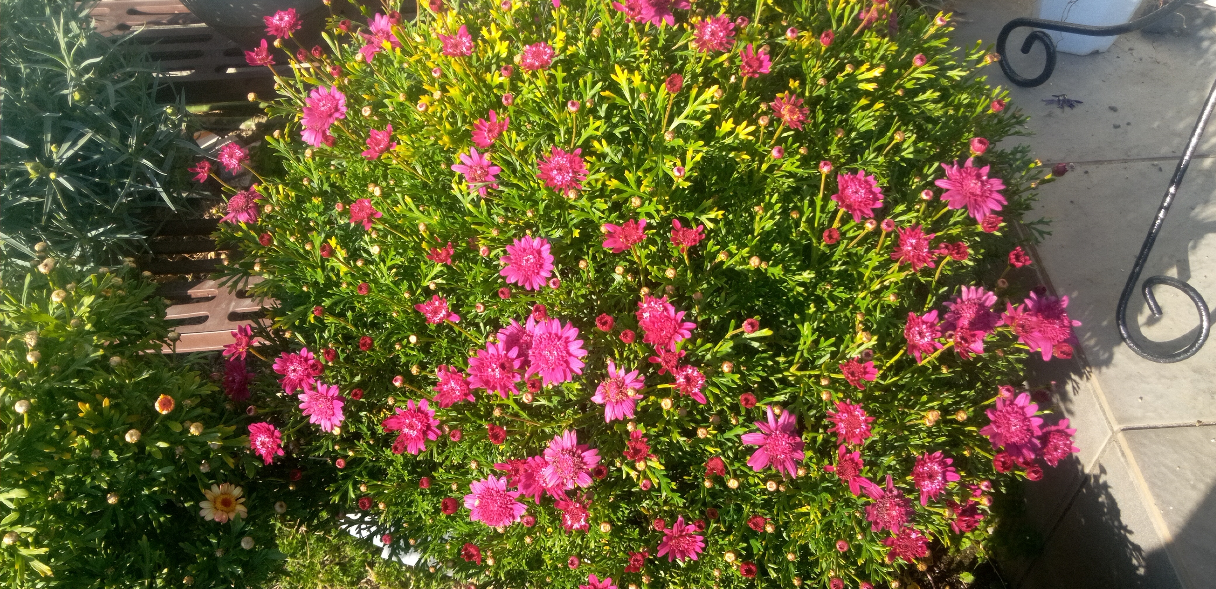 三年目に突入した、ルビーさんまたまた、大きくなり、玄関が狭くなってきました、前の寒波で葉先が黄色になっていますが、玄関に取り入れることなく、咲いてきました、また、春にボンザミッキーになれますように、ずっとお外でまあ、ほったらかしてました、ボンザマーガレット強し
