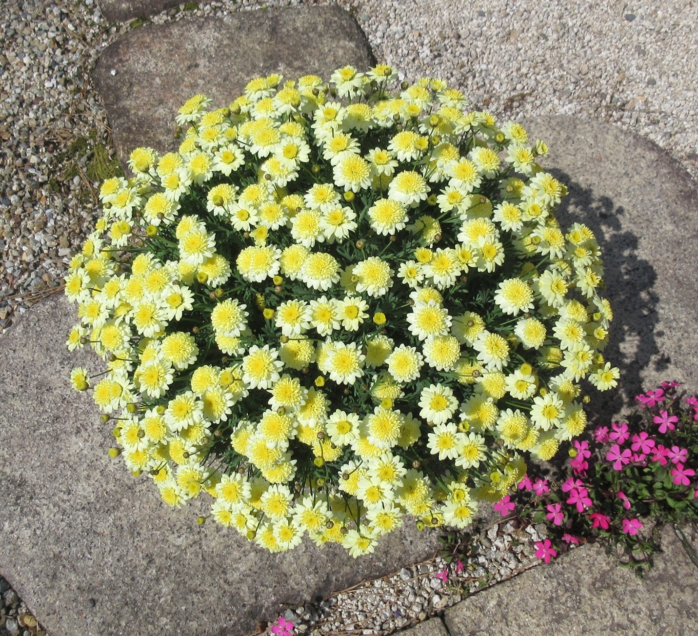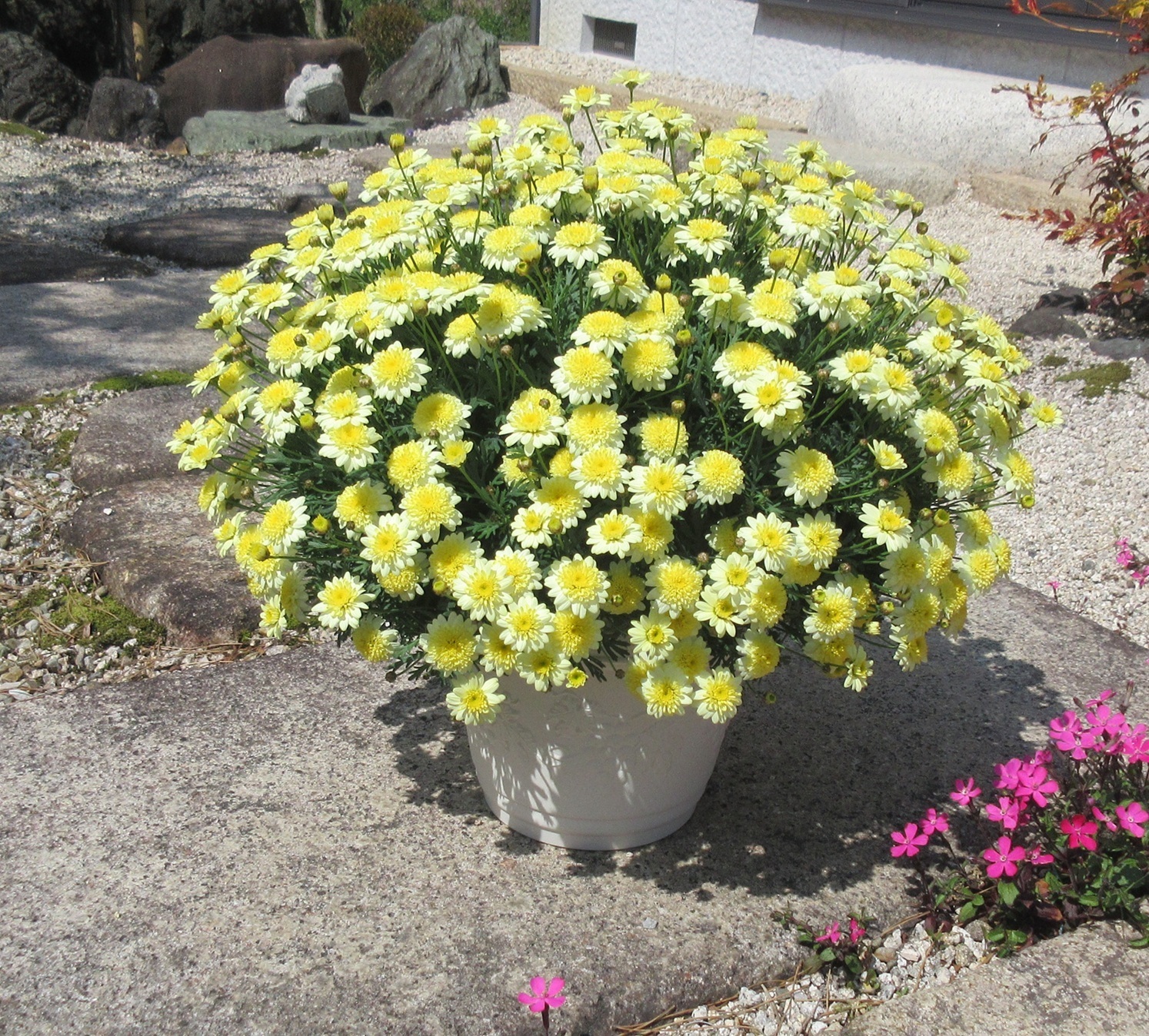 トップ > マイガーデン > 花活 > ボンザマーガレット レモンイエロー kumi 東海 2026/03/23 12:59 ボンザマーガレット レモンイエロー こんにちは♪ ボンザマーガレット レモンイエロー。 満開かな。 8号鉢に1株植えです。 まだ咲きそうですが、ここで満開宣言しておきます。 正直、何がおこるか分からなくて(^_^;) コスモスピンクは満開間近で倒れて負傷。 まだ満開宣言ができていません。 レモンイエロー、初めて育てました。 纏まりが良くて花付きも抜群ですね。 2026年3月18日 https://sunsungarden.jp/announcements/fknxnwhjexdhojyk ボンザマーガレット いいね 共有する 共有する リンクをコピー ボンザマーガレット 詳細を見る コメントする 0 件の返信 (新着順)