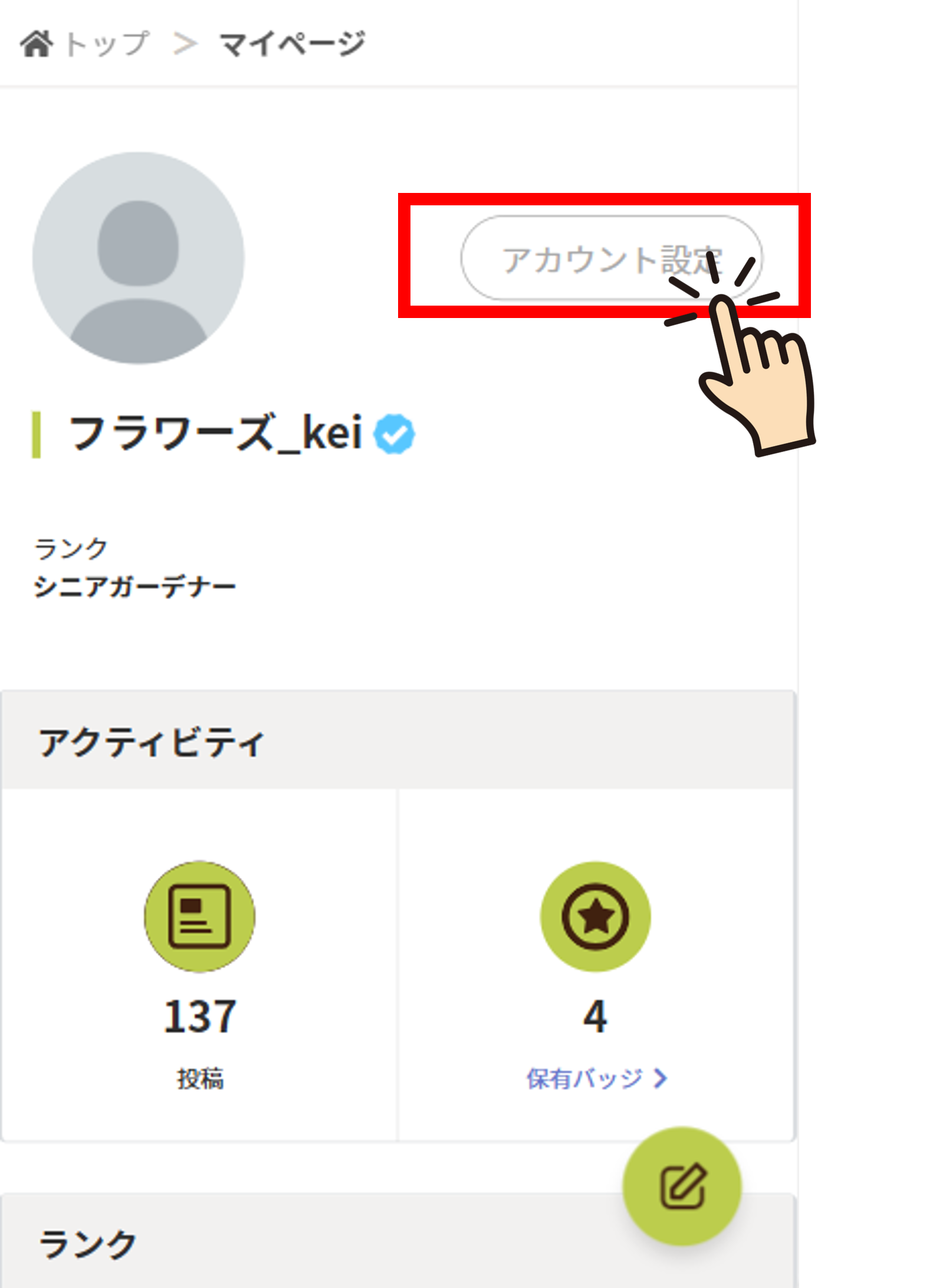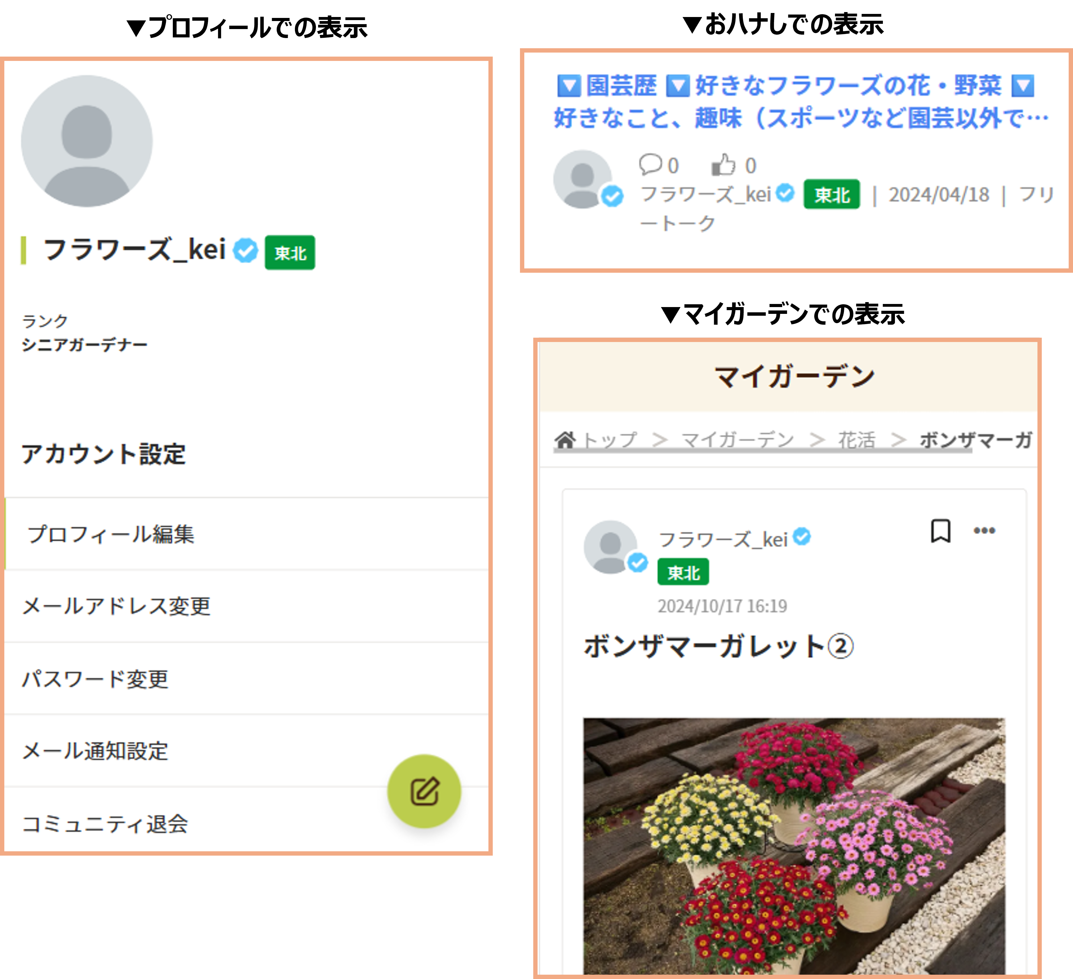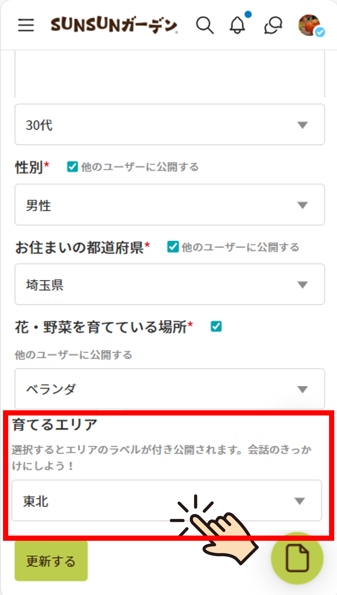 ご自身のアカウント設定 > プロフィール編集から、一番下にある「育てるエリア」を設定すると、ラベルが自動的に反映され、ニックネームの横や下部に表示されます!