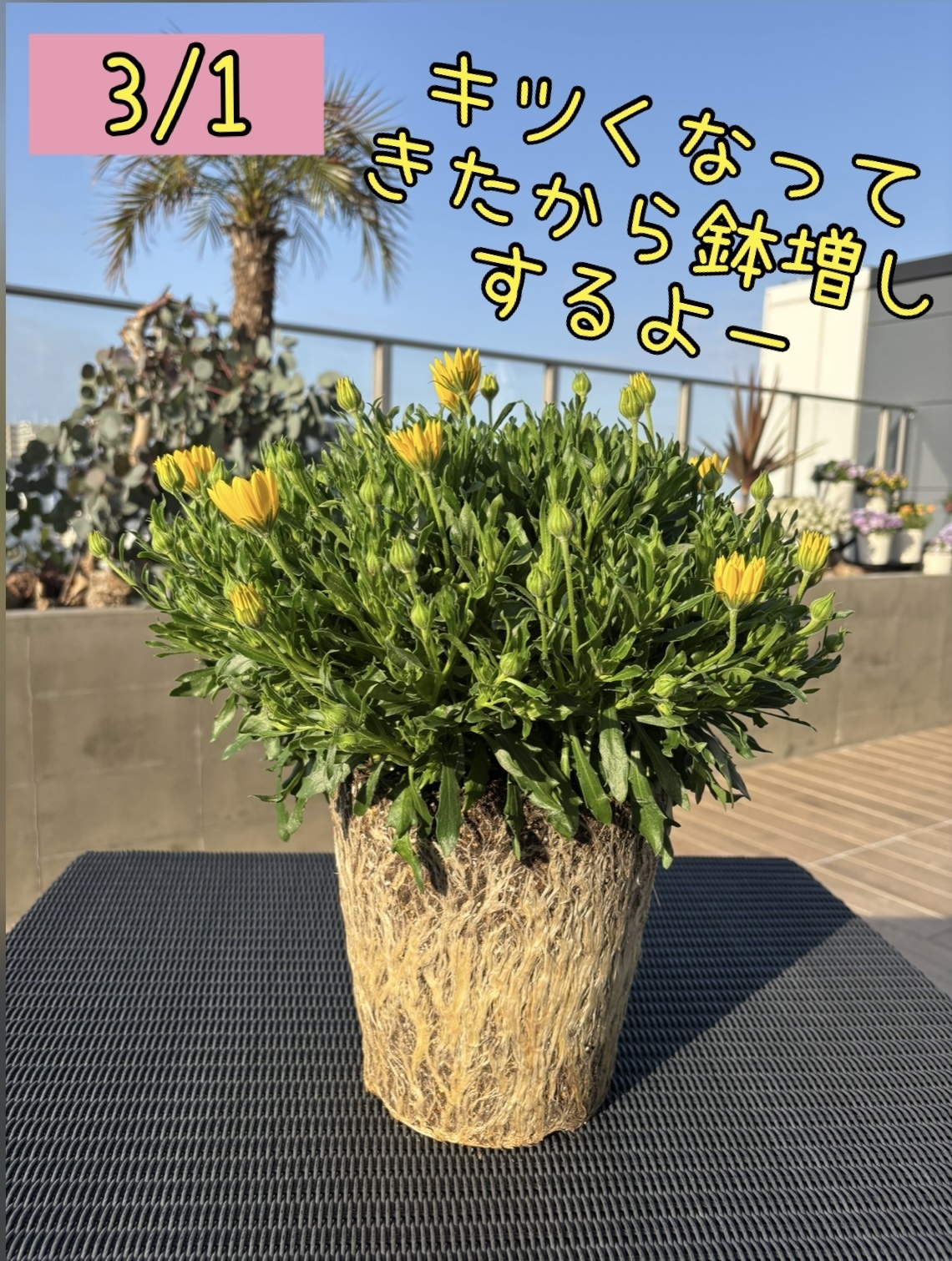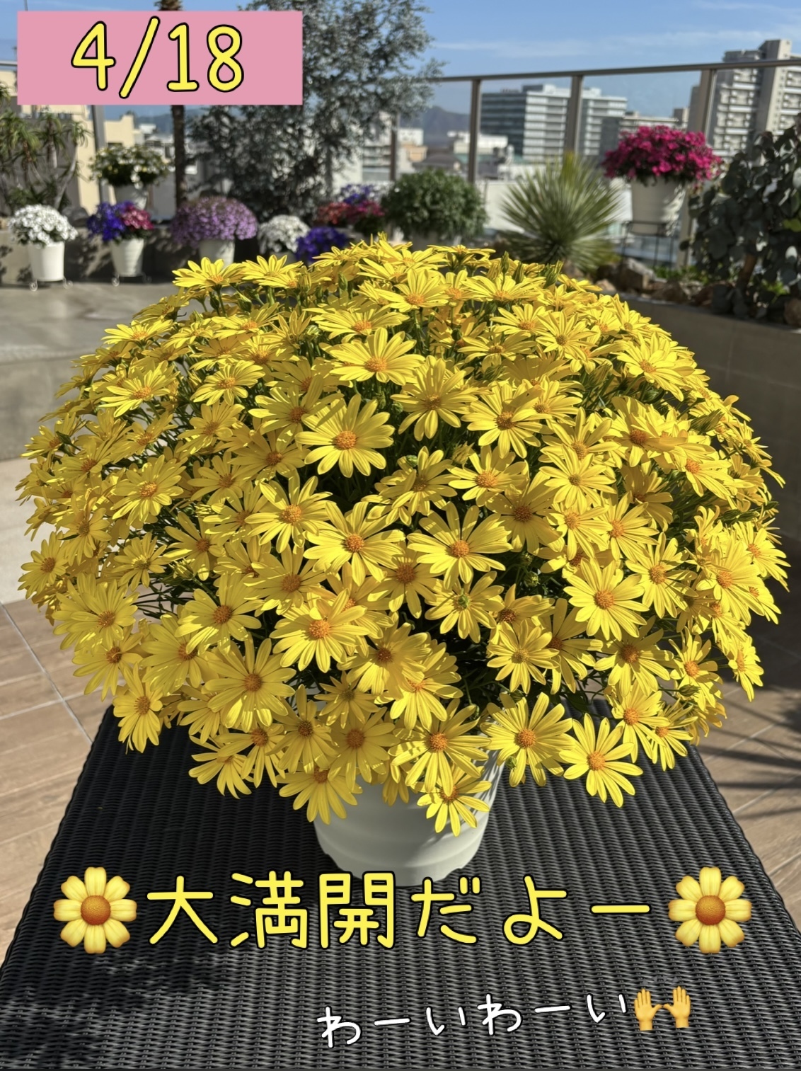 トップ > マイガーデン > 花活 > 🌼キラライエロー満開です🌼 ありあいりん 近畿 2026/04/25 21:02 🌼キラライエロー満開です🌼 10月12日に植え付けたキララが満開を迎えました一🙌✨ キラライエローの黄色ってホントにキラキラ眩しいぐらい輝いててめちゃくちゃ綺麗なんですよね😍 そんなキララちゃんの植え付けから満開までの様子をご紹介します💛 植え付け方は私がやってるボンザマーガレットやセネッティと同じやり方、 「上は切らずに下を埋める」方法です🪴 この方法ならノーピンチなので長くお花を楽しめるし、株がガッチリするし、枝数が増えて花数も増えるし良いこと尽くめなんじゃないかしら🤭 キララ わたしの成長記録 キララ キラライエロー 先輩サンフラアンバサダー いいね 共有する 共有する リンクをコピー キララ 詳細を見る コメントする 1 件の返信 (新着順) ミュートしたユーザーの投稿です。 投稿を表示 りょうこ923garden 東海 2026/04/25 21:36 ありあいりんさん😊✨ キララかわいい💛💛💛 キラキラしていて、元気が出るお花だね😊✨ 根っこ、ほんとすごーい✨✨✨ ありあいりん先生👩🏫‼️植え付け講座、勉強になります〜✨✨✨ いいね 返信する ミュートしたユーザーの投稿です。 投稿を表示 ありあいりん 近畿 2026/04/25 22:51 りょうこ923garden りょうこさん♡キララ可愛いよね😍 特にイエロー推し💛💛💛 うんうん♪ホント元気をもらえるお花だね🤭✨ 根っこすごいでしょ✨自分でも見た時ビックリした😂可愛らしいキララの逞しさを感じる根っこだね💪 植え付け方、参考になって良かった💓 いいね 返信する