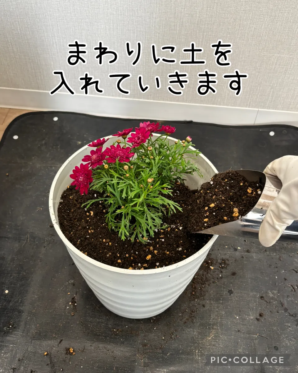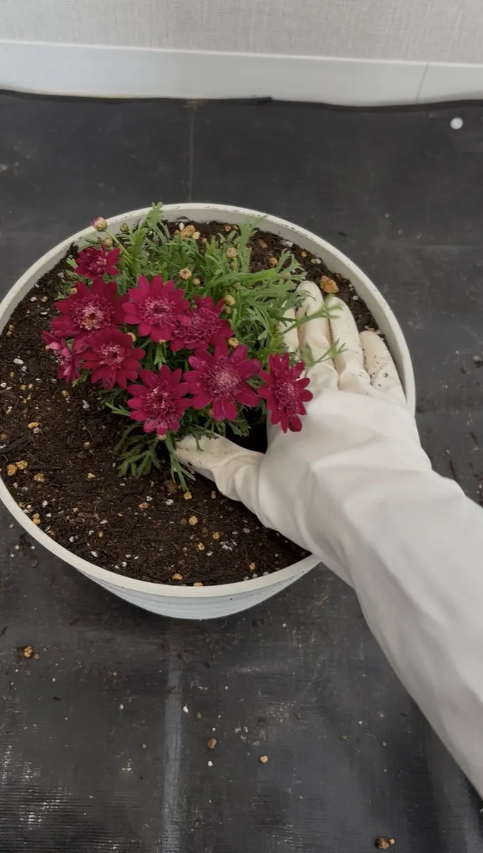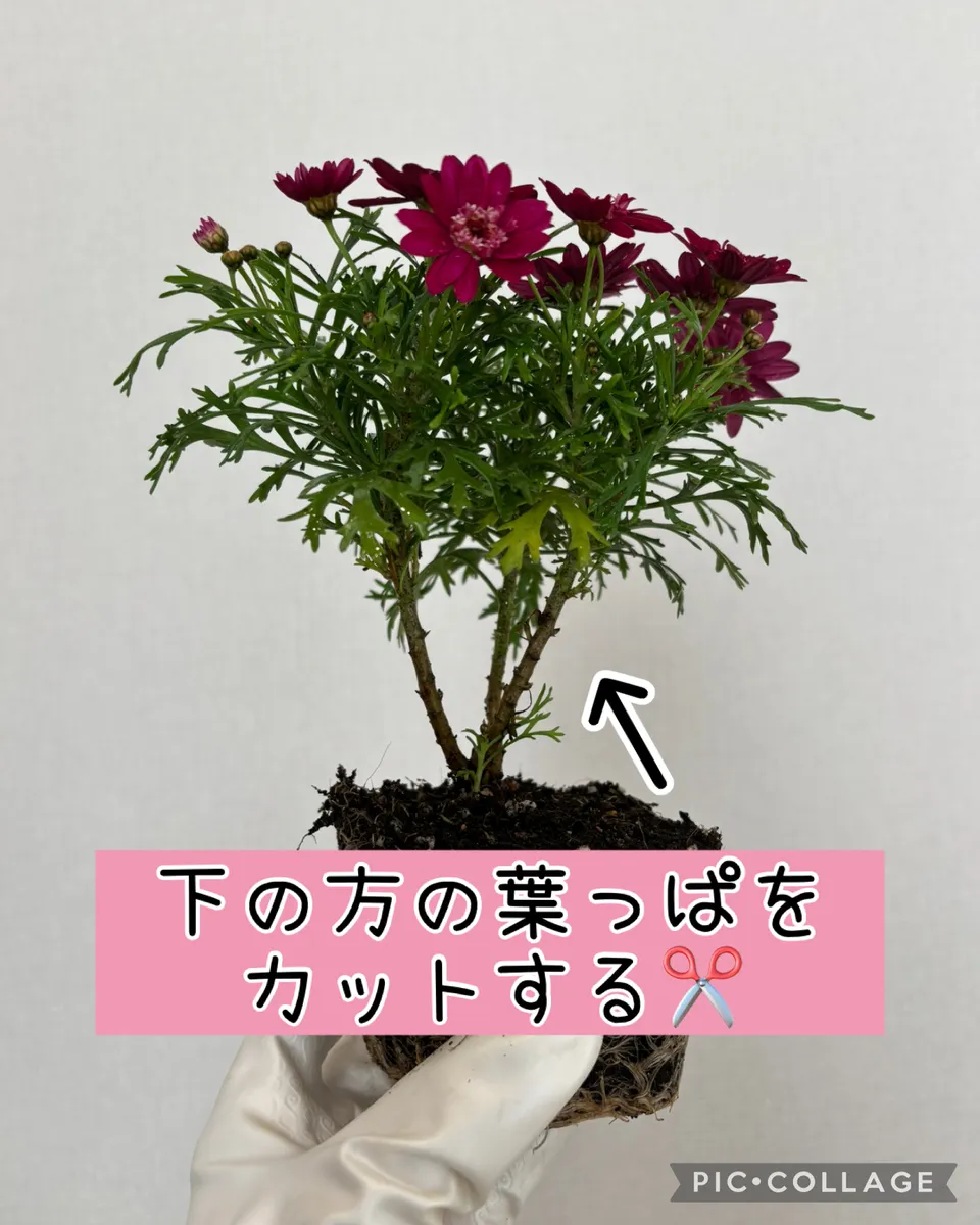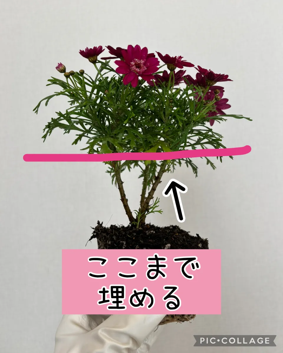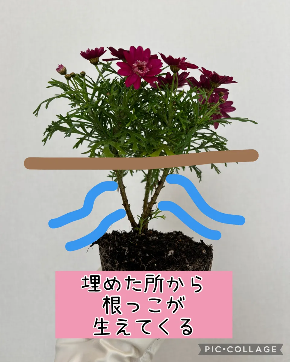 今付いてる蕾やお花を切るのはもったいないのでピンチはせずに深植えにしちゃいます。このやり方をすれば秋から春までずーっとお花が楽しめます😄