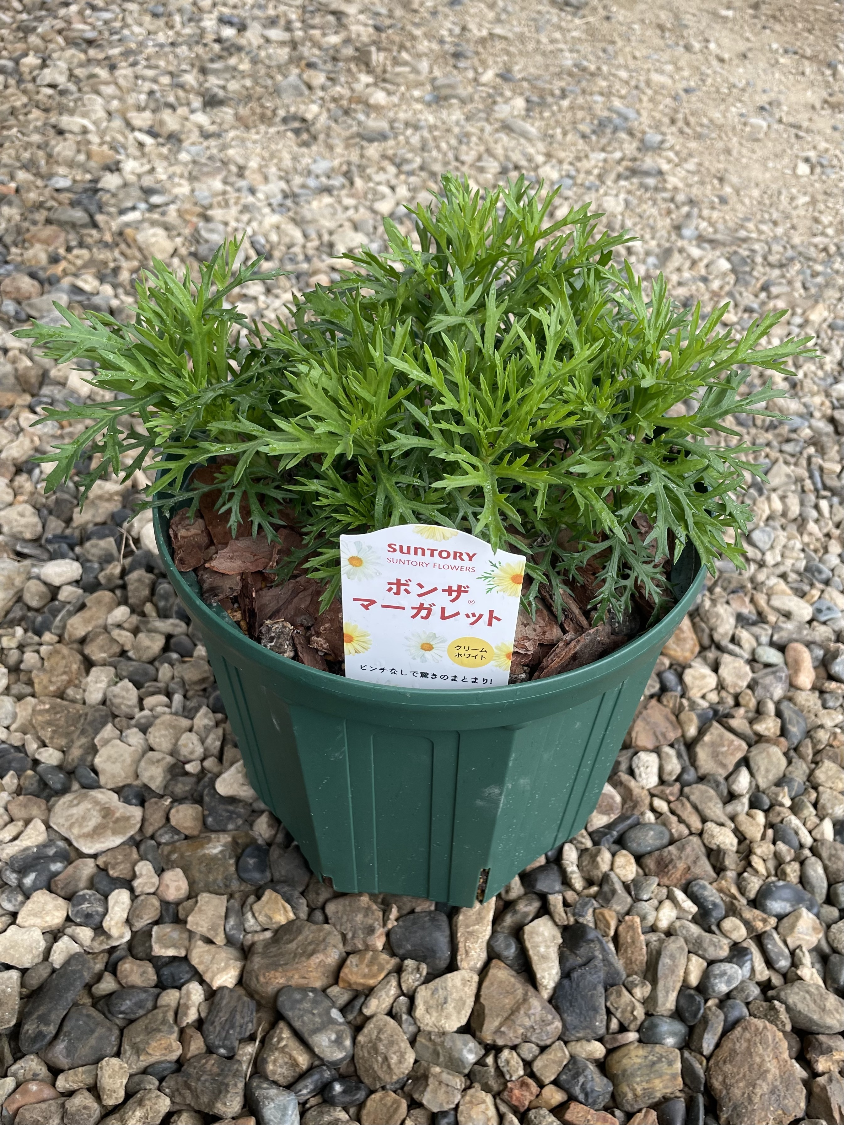 8号スリット鉢で育成中のボンザマーガレット クリームホワイト大きくなってきました。