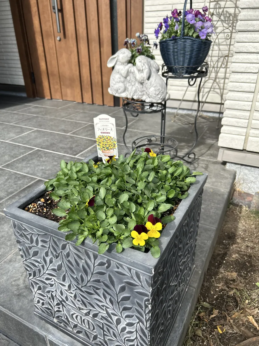 30cmスクエア鉢に3株植え🌼🌼🌼