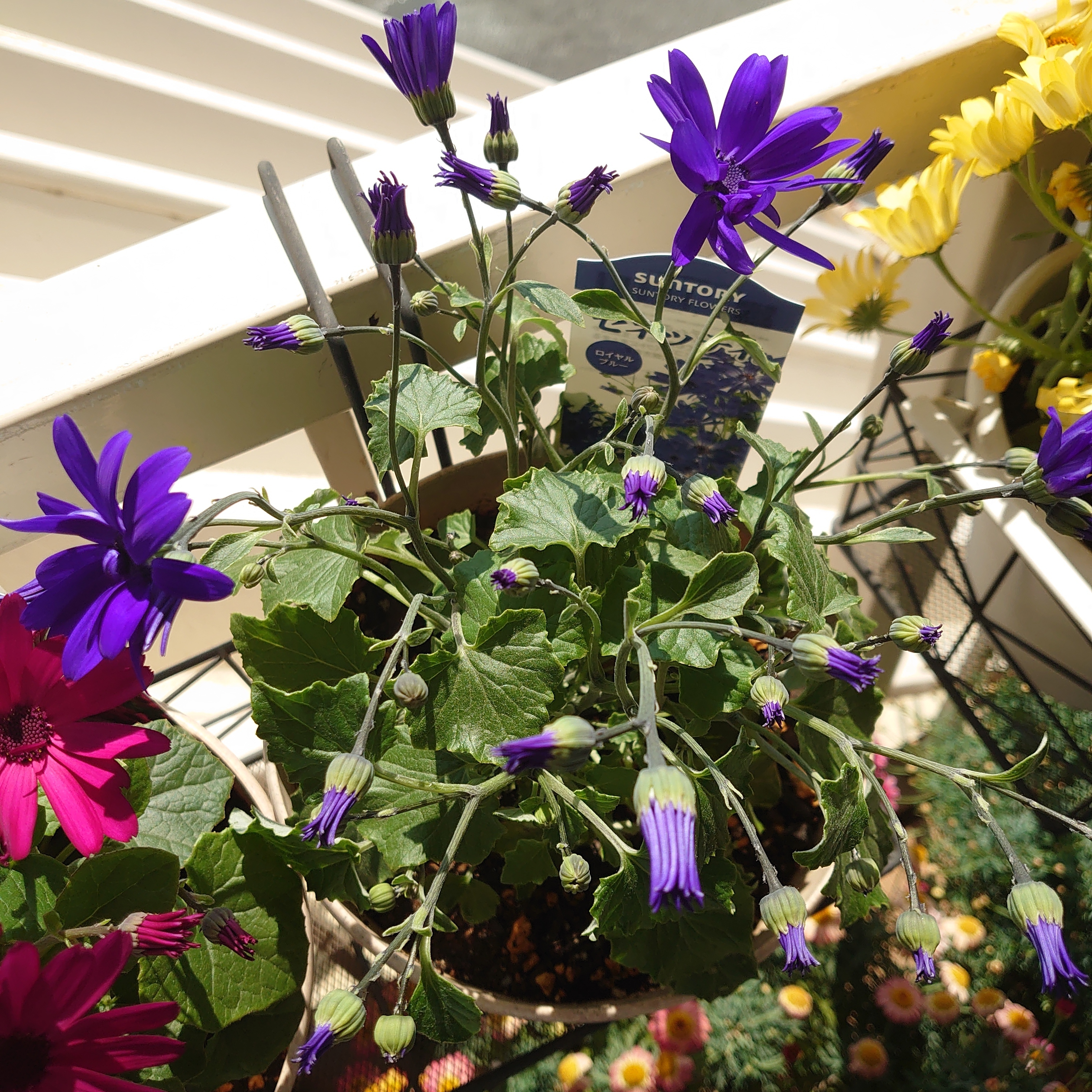 春苗セネッティロイヤルブルーは2輪今日開花、茎がやっぱり伸びて長いのがちょっと気になりますが😅