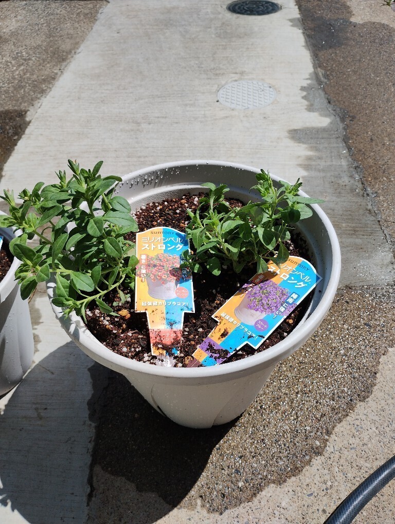 それが嫌で、最初にビューティカルと言う他メーカーのペチュニアを買って、ホントに☔☔に強い事がわかり👍販売が遅かったサンフラのストロングを買いました✌️