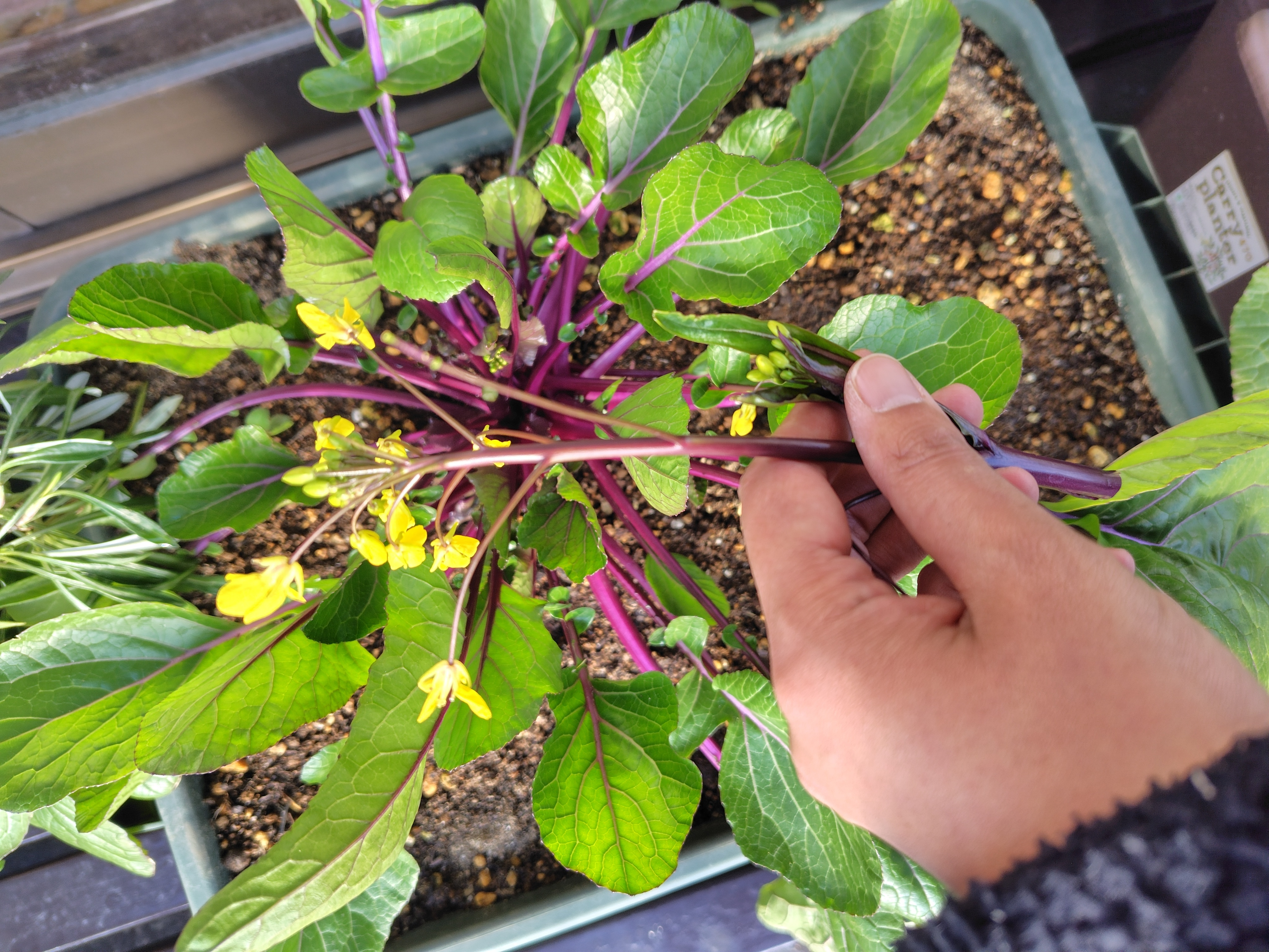 緑はまだですが、ワサワサ🌳こちらは白菜みたいな葉ですね。