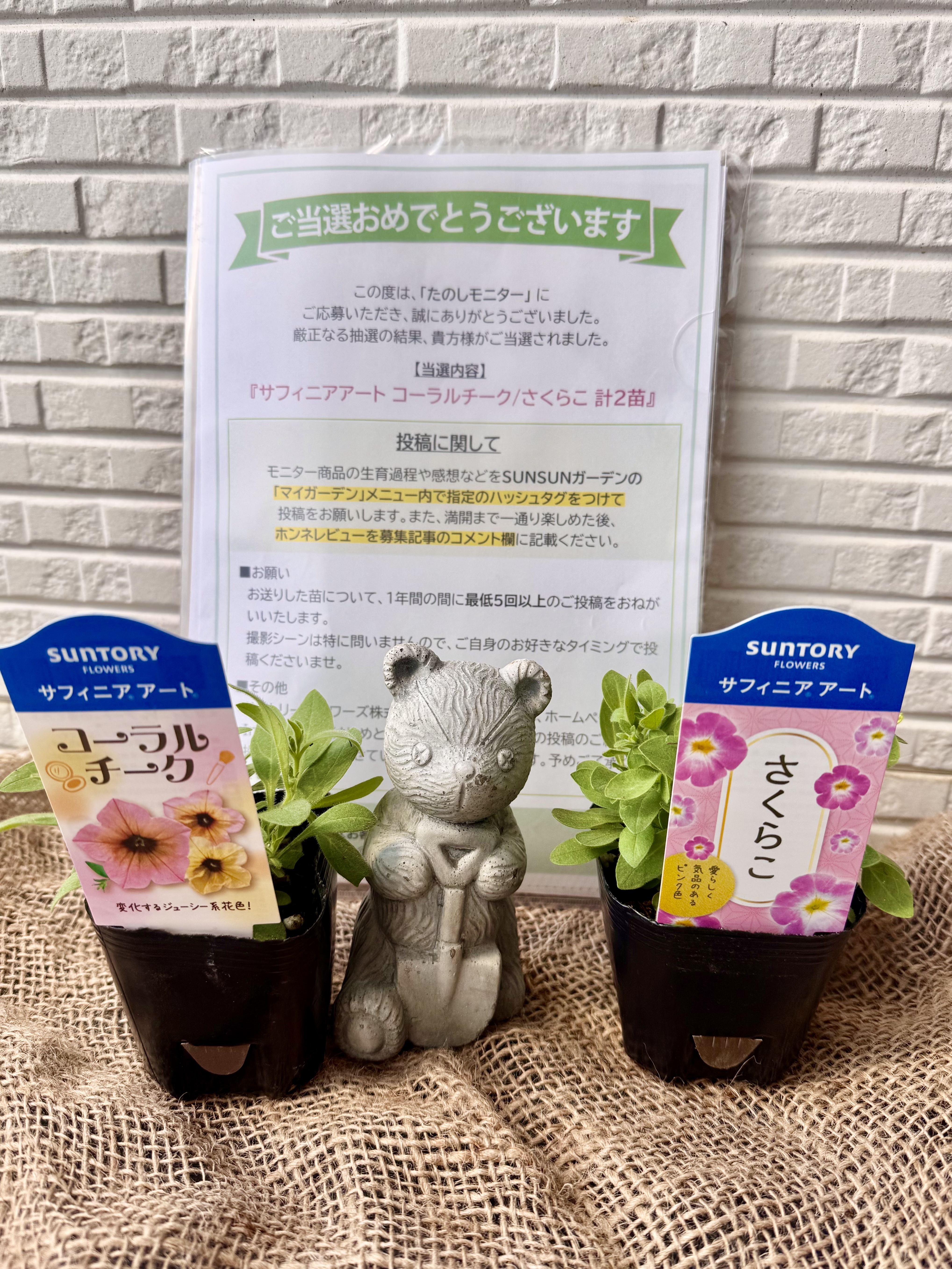 先日 サフィニアアートコーラルピンク と さくらこ のたのしモニターを応募したところ 当選🎉 そして早速 我が家に苗が届きました🎁
