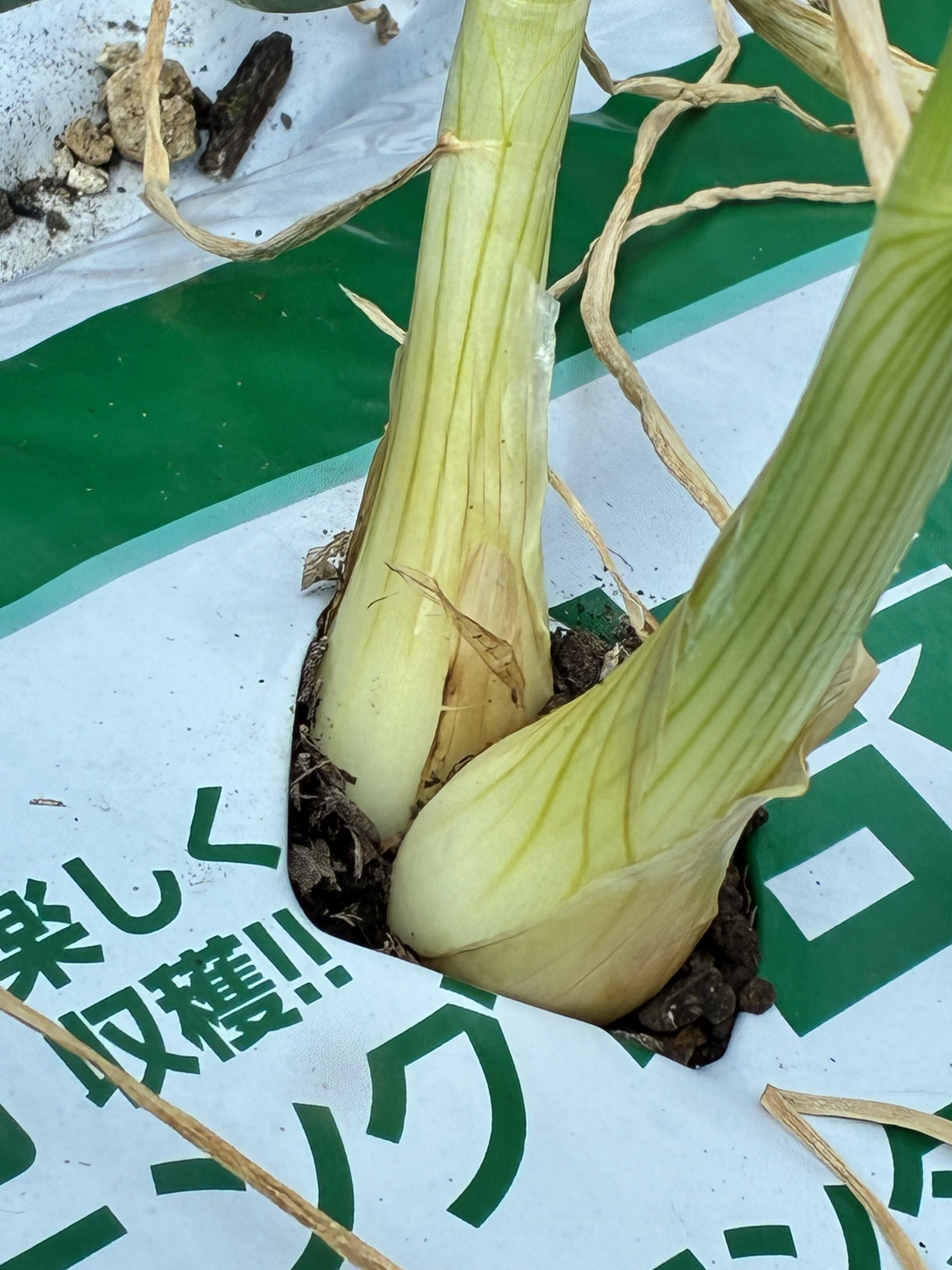 あまたま早生🧅袋栽培、立派に育ってますね☺️