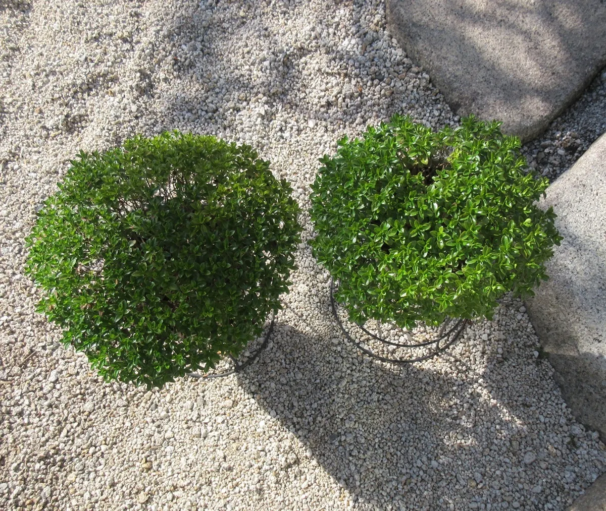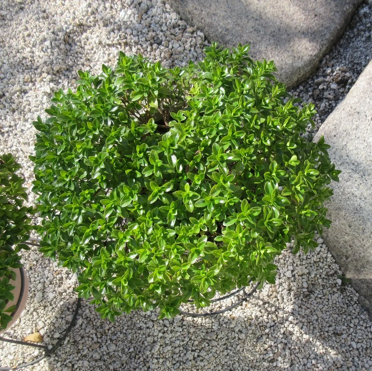 左、2024年春購入2年目、7号鉢に1株植え。