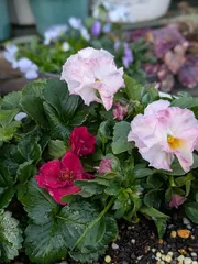 ミルフルと🍓ローズベリー・レッド🍓の寄せ植え 近年、我が家ではもはや【花材】として扱っている 本気野菜ローズベリー・レッド🍓 今年は、淡いピンクで強いフリルのミルフルと約7号のカップ鉢に寄せ植えしました。 先日、白い花っぽい蕾を確認したので「ん!?白い花!?もしかして、生産農家orホムセンでのラベル挿し間違いかな