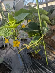 追加購入したポリッキュ ひと株購入→収穫→実食!したら、、、あまりにも美味しかったので時期は遅かったけど2本追加購入したポリッキュたち。 1本は根元から茎が折れて、テキトーにポケモンのマステで固定。ダメ元でしたが、枯れては居ない!!!良かった! 地這いだとオクラの新苗達を巻き込み
