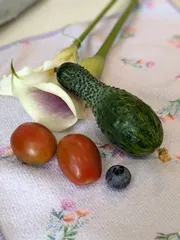 ポリッキュ収穫! ポリッキュ食べたいよお〜もっと食べたいよお〜 やっと、追加購入した2本のうち、調子の良い株で、記念すべき1本目の収穫ができました! 夫が鶏ささみを「何にでも使ってね」と、下ごしらえしてくれてたのでにんにくやごま油などとあえて食べました✨ &nbs