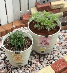 かふぇらてさん♡おはよう🌞 準備は大事ですからね!私でわかることならなんでも聞いてね👍結構テキトーだけど😂 私はまずは5号のスリット鉢に仮植えしてある程度育ってから8号に鉢増ししたよ🪴 私たちの時はどんなお花になるのかがわからなかったしね 私は届いた時葉っぱが何本も折れて心配だったから😟 でも始