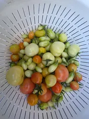 今日の収穫 一応今日でトマト🍅終わりにしたいと思います🍅いっぱい採れました。大豊作でした🍅特に純甘とオレンジはアホほど採れました。もちのろんろんいい意味のアホです。子供達のヤバいですねꉂ😂笑昨日の夜子供達と「今年何回トマトソース作ったか覚えてる?トマトソースだけちゃうけどな」とか言いながら話してましたが、みんな