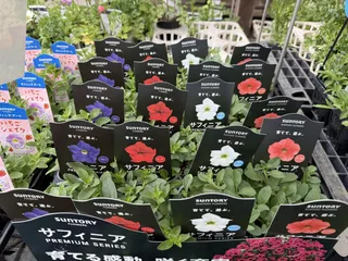 こんにちは☀️今日、いつものカインズにサフィニアプレミアム入荷しました‼️パープルは別にワントレーありましたが、別の色は、ワントレーに混ざって入ってました‼️ガッツリ二郎系の株です🚅💨ポットを持った感じ、少し柔らかい感じでした‼️3色に厳選してお迎えです🙈