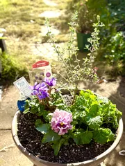 花友さんたちと行った弾丸千葉ツアーで、お迎えしたウインティーブルーピコティーを寄せ植えにしました。せっかくなので、はるみんにいただいたシクラメンとお気に入りのパンジー、そしてラゴディアハスタータと寄せ植えにしてみました。後で切らしているマルチングのウッドチップでおめかし予定です💅