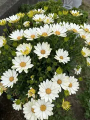 変形しても、場所取るのね。我が家の家と家の間、通れなくなって、そのままこじんまり育てたつもりでしたが。上手に育てたら、3鉢くらいしか置けない隅切りスペース。マーガレットが咲くと春だなぁ、と実感します😊