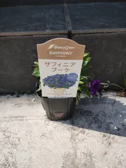 はじめましてのサフィニアブーケ💙コーラルチークとさくらこを購入したコメリさんで発見コメリさん限定なんですねキューティバイオレット可愛いカッコいい名前まとまってブーケのように咲くのかな☺️楽しみです😍