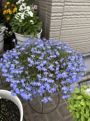 【意外と真冬にも咲く!!】 アズーロコンパクト大好きです✨ スカイブルーが強くて特に我が家では重宝しています。 頑張って夏を越したら・・・ 12月も1月も2月も・・・ バンバン咲いてくれたのがうれしい誤算でした✨ (霜がおりる地域なので、壁際に寄せたり、玄関に取り込んだりしました。) ↓ 周り