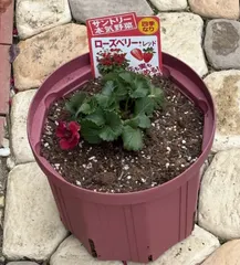 はっぱさん♡ 本気野菜!🍓 ローズベリーお迎えされたんですね〜💕 八重咲きの花びらがとても素敵ですよね💕 ウチも2月まで花を落としていたのですが今は咲かせています 楽しんで下さいね😉✨✨