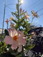 グングン組 久しぶりの投稿〜😅ちょっと油断するとサボっちゃいますでもお花のお手入れは欠かさず💪フェンスをグングン登るクライミングサンパラソル!涼しい日が増えてお花も増えました😊摘芯とかするのかな?脇芽伸ばした方がお花増えそうな気がします