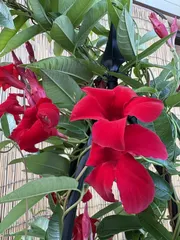 クライミングサンパラソル(アンバサ苗) お久しぶりのログイン♡お盆休みはSNSもお休みして満喫またボチボチ投稿もしていきます☺️サンパラソルの赤より花弁が細い🙄✨夏だ〜🌺💕夏最強すぎて文句なしです🎊週2〜3の水遣りで済むのが助かりすぎる🥹 それにしても毎日暑ーい