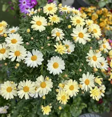待ちきれない〜💛🩵 ボンザマーガレットクリームホワイトじわじわ…満開まであと少し ワクワク♪今までのボンちゃんよりもお花が大きくマックスマムに似てるかも✨