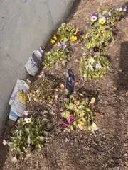久々の投稿になります(*^ω^*)。北海道の春はまだまだ寒いですが🥶雪解けの花畑のすみっこで今春に向けて、去年東京から迎えたフィオリーナとミルフル各4株。全員、冬越しできたようです(≧∇≦)✨👇ほんとーに、すみっこ(⌒-⌒; )💦左列、下から2番目のゴールドだけ寒冷での変化か、葉っぱが赤っぽくなりま
