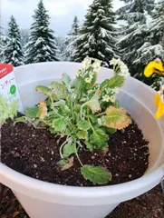 低温障害🧊🥶🧊 箱庭のプリムラ・マラコイデス系はウインティーを始め、みんな葉焼け😣 不織布を掛けてるけど、霜よけだけの効果だもんね😂 最近の朝方のマイナス気温には耐えなれないよね😩 ひっくり返ったライムグリーンは回復待ちだし、ローズとピコティーブルーは葉焼けでチリチリ🥴 今年もウインティーは