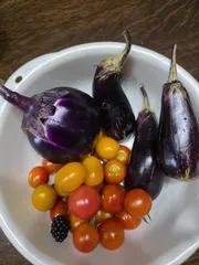今日の収穫その1 今日はトマトの薬剤散布の日なので、色づいてないのも早めに収穫しました。純甘にちょっと前にサビダニらしき症状が出たので、ローテーションで薬剤散布を先週から始めました。ちょっと治まってきてたけど、やっぱり今日見たら茎の下の方が茶色くなって来てたので、やっぱり薬剤散布は続けないとと思いました。