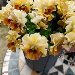 強風、豪雨、気温の上昇💦パンジービオラが急に弱り始めました。キレイなお花はお部屋に飾ってそろそろサヨナラするミルフルが出てきました💛写真はキレイに咲いていた時のもです。