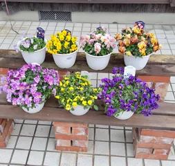 寄せ植えにしていたウインティーのブルーピコティの花数が増えてきました💜ただ ウインティーの手前にミルフルを3苗植えてるんですが成長が思わしくなくて...この鉢の大きさに苗を詰め込み過ぎたかな💦