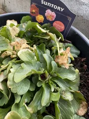 冬越しできたのと…できてないのと… 今日、フィオリーナやミルフルなどのパンビオを玄関の軒下から、移動しました。このパンビオたちがのっていたフラワースタンドの下には実はサンフラのお花たちが隠れてました。 結果は… 4鉢ともなんとか無事冬越しできました。😊私にとってサンフラのお花たちは初冬越しチャレンジです😊上段の左側