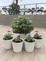 マックスマムのホワイトは初挑戦💓ミーテはミステリーピンクとラズベリーローズの2年目ちゃんがいるのでこの2色をお迎えしました。ミルキーピンクはさくらピンクから名前が変わったみたいですね☺️元気に育ちますように🌸🌸🌸10号鉢5号鉢5号鉢