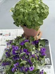 セネッティブルー 昨年10月頃お迎えした秋苗強風🌀で折れた影響か??満開になりきれずに春の2度目の開花を目指して切り戻し✂︎✂︎✂︎を春苗セネッティ のちびッティと一緒に開花出来るといいね(¨̮🙏)