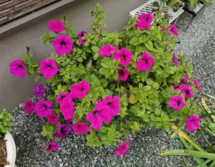 サフィニアPREMIUM今爆咲き 放置冬越しサフィニアPREMIUM、肥料もあげてない、日光もあまりあたらないで今爆咲きです。最近の気候、お花の育て方少し分かって来たかもです。夏は咲かない。夏は無理しない。植物のためにも、人間のためにも。咲いてくれたら、ラッキーくらいな感覚がいいかも。暑さより、雨が枯れる原因な気がします。
