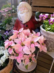 プリンセチア🤍とサンタクロース🎅 ピンクのプリンセチアが可愛い♡