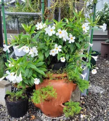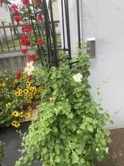 NEW クライミングサンパラソル大輪系ピーチオレンジ クライミングサンパラソル大輪系ピーチオレンジ🧡気温が落ち着いて来たので、咲いて来ました🥰相変わらず、成長は遅いけど、お花が沢山咲いてくれるので、これはこれで良い感じです♪