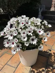 春苗セネッティ やっといい感じに! セネッティ ホワイトレッドアイいい感じになってきました🤗春苗セネッティは、初めて育てますが、秋苗とは違いコンパクトでかわいい💕来年は、いろいろな色もチャレンジしてみたいなぁ(^。^)